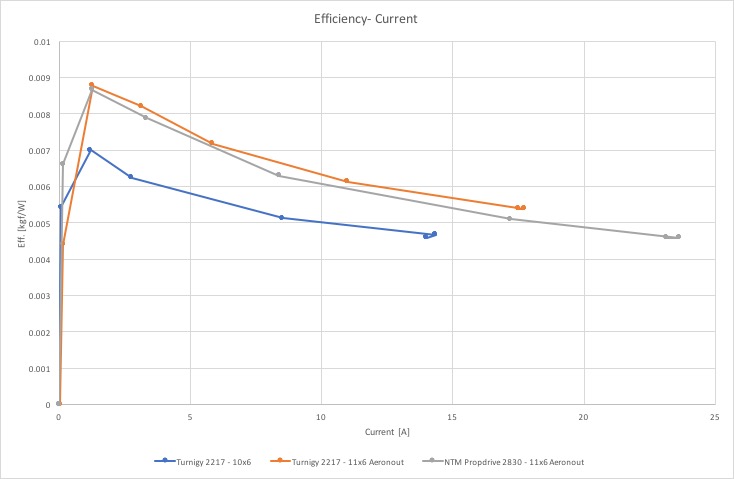 | Turnigy 2217 – 11x6 Aeronaut | 1,11 | 17,7 | 205 | 8,772 |